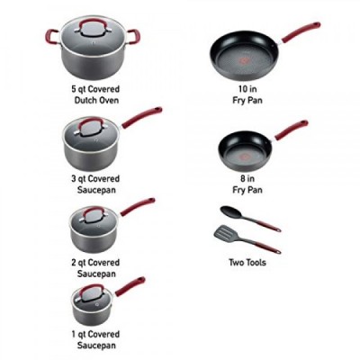 T-fal Ultimate Hard Anodized Nonstick Cookware Set 12 Piece Oven Broiler Safe 600F Pots and Pans, Dishwasher Safe Black