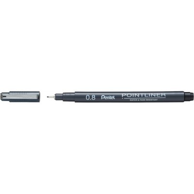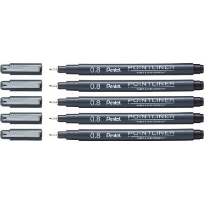 Pentel Pointliner S20P-8A, Fineliner, schwarz, wasserfest und lichtecht (0,8 mm 5er Pack)