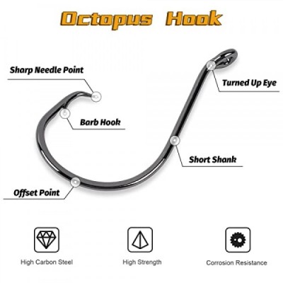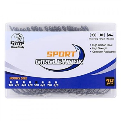 UCEC 서클 후크 바닷물 낚시 후크 2X 강력한 오프셋 포인트 메기 후크, 고탄소강 문어 후크 피쉬 후크 키트 담수, 40PCS, 크기: 1/0 3/0 4/0 5/0 6/0 7/0 8/0
