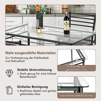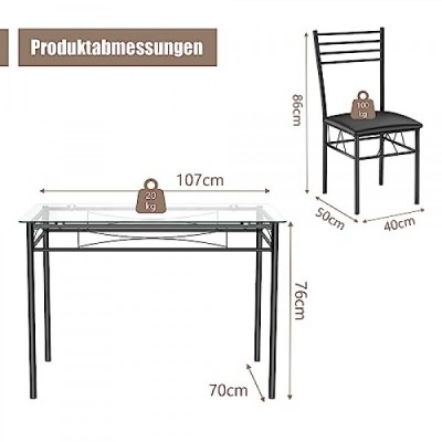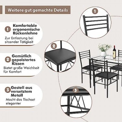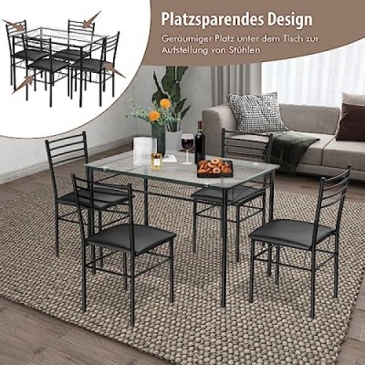 COSTWAY 5 Piece Dining Table Set Glass Top Dining Set Dining Set with Padded Chair Kitchen Table with 4 Chairs Seating Set for Dining Room Kitchen Space Saving