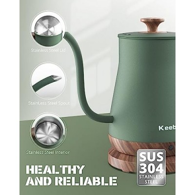 Gooseneck Electric Kettle, Electric Tea Kettle Stainless Steel, Pour over kettle for Coffee, 1000W Hot Water Kettle Electric Auto Shut Off, 0.8L, Wood-like Grain Finish Handle, Matcha Green