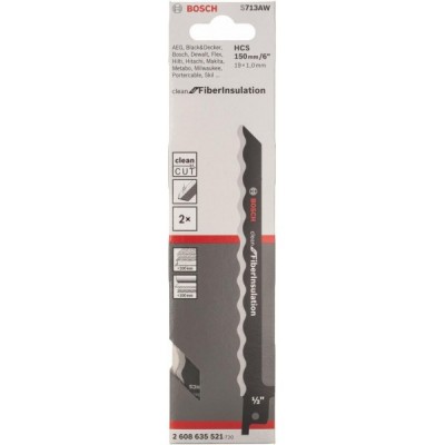Bosch Professional 2 pieces Sabre Saw Blade S 713 AW Clean for Fibre Insulation (150 x 19 x 1 mm, sabre saw accessories) 150 mm Soft Materials Corrugated cardboard, rubber, leather, foam 2 pieces