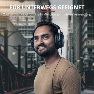 트러스트 게이밍 헤드셋 GXT 414 마이크 포함 PS4, PS5, PC, Nintendo Switch, Xbox Series X, Xbox One - 조정 가능한 헤드밴드가 있는 Zamak 유선 게이밍 헤드폰 - 블랙 멀티플랫폼 블랙