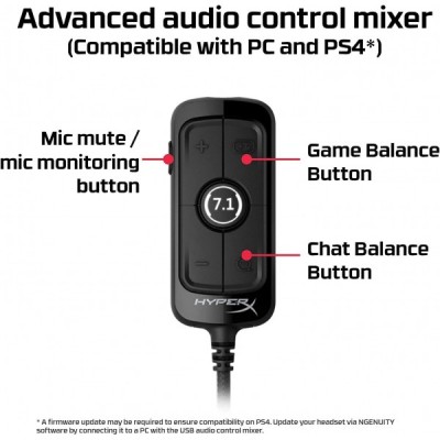 HyperX Cloud Alpha S - 게임용 헤드셋, PC, PS4용, 7.1 서라운드 사운드, 조정 가능한 베이스, 듀얼 챔버 드라이버, 채팅 믹서, 통기성 인조 가죽, 메모리 폼, 마이크, 블랙 블랙