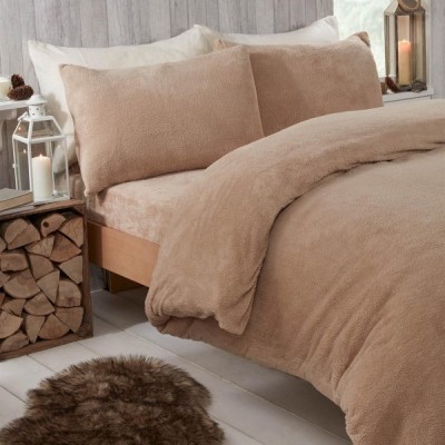 Brentfords Teddy Fleece Duvet Cover with Pillow Case Thermal Fluffy Warm Cosy Soft Bedding Set, Latte Beige, Single Single Latte Beige