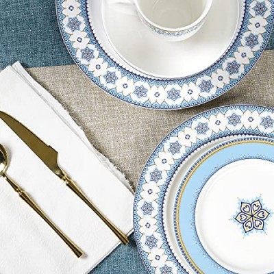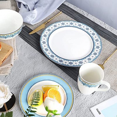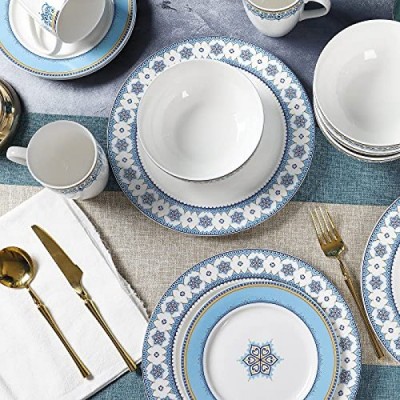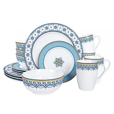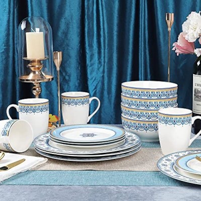 fanquare 16피스 도자기 주방 식기류(머그 포함), 4인 서비스, 클라우드 그레인 페인팅 그릇, 접시, 밝은 파란색 디너 세트