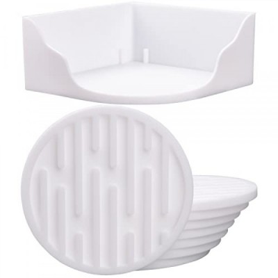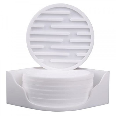 Smithcraft Silicone Coasters for Drinks, Coaster Set of 8, Drink Coasters for Coffee Wood Table, Cute Cup Coasters with Holder, Funny Coasters for Bar, Suitable for All Kinds of Cups and Glasses White