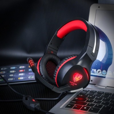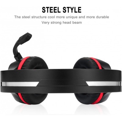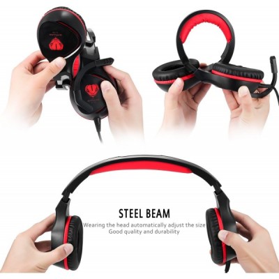 BUTFULAKE Gaming Headset, Audio Stereo Bass mit LED, Kopfhörer mit Controller Praxis, kompatibel für PS4, Xbox One, PC, Laptop, Tablet, Smartphone … (Rot)