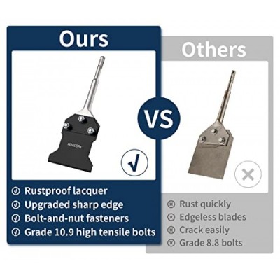 SDS Plus Floor Scraper with Replacement Blade, Firecore 4 Inch x 10 Inch Rustproof Tile Removal Tool Thin Set Remover Chisel Bits for Rotary Hammer Drill, Flooring Adhesives Remover FS23410B