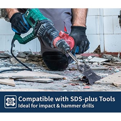 교체 블레이드가 포함된 SDS Plus 바닥 스크레이퍼, Firecore 4인치 x 10인치 녹 방지 타일 제거 도구 회전식 해머 드릴용 얇은 세트 리무버 치즐 비트, 바닥 접착제 리무버 F