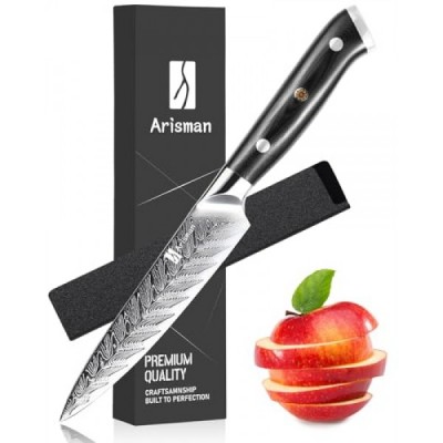 Arisman Japanese Damascus Utility Knife 5 Inch,VG-10 Cutting Core 67-Layer Damascus Steel,Ultra Sharp Kitchen Petty Knife with Full Tang Ergonomic G10 Handle for Veg and Fruit