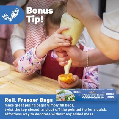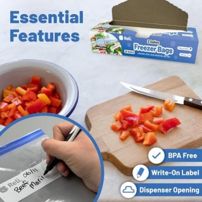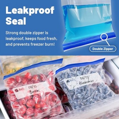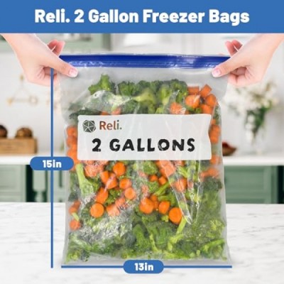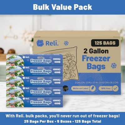 Reli. 2 Gallon Freezer Bags (125 Count) 13x15 inch Freezer Bags 2 Gallon Jumbo | Double Zipper Freezer Bags, Press to Seal | Write on Label | 2 Gal Food Storage Bags | Bulk Freezer Bags - Large, Clear