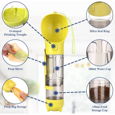 Barrageon Hund Wasserflasche Etrinkflasche Haustiere Trinkflasche 500ML Tragbare Futterbehälter Mit Müllschaufel 7 Rollen x 350 Haustierkotbeutel Outdoor Camping Spazierengehen (Gelb) 500 ML Wasser Gelb