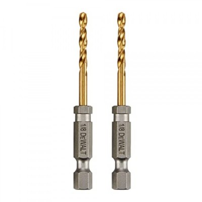 DEWALT Drill Bit Set, 1/8, 2-pc, Titanium Nitride Coated, Tapered Core for Optimum Durability (DD5108T)