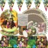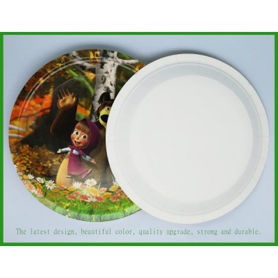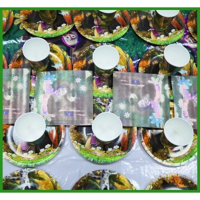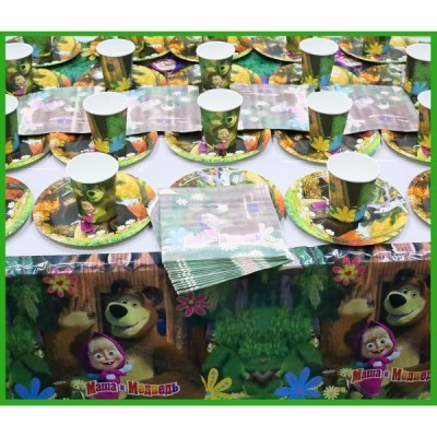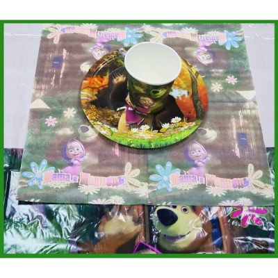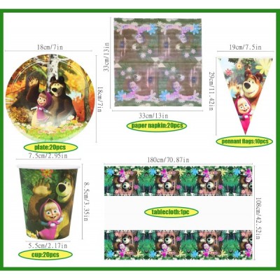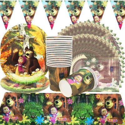 SHAMO 62 Pieces Animal Birthday Children's Party Tableware Set Party Accessories for 20 People, Masha and the Bear, Paper Plates, Cups, Tablecloth, Napkins, Banners for Children's Birthday Party