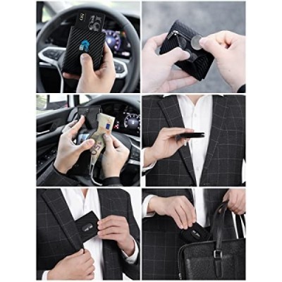 GSG Slim Wallet with Coin Compartment, RFID Protection, Men's Small Credit Card Holder, Mini Leather Wallet, M22085, 1-Black (Carbon Fibre), rfid wallet
