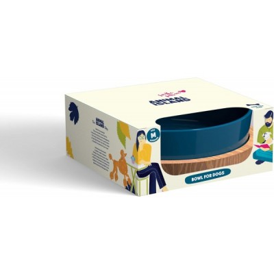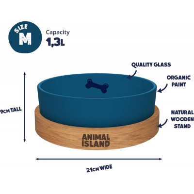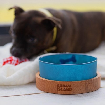 Hundenapf aus Glas mit Holz Ständer Futternapf Hund Antischlingnapf Hunde Fressnapf mit Organischer Farbe Bemalt Wassernapf für Hunde Hundeschüssel Glasnapf Gravierter Ständer (1300 ml, Deep Sea Blue)