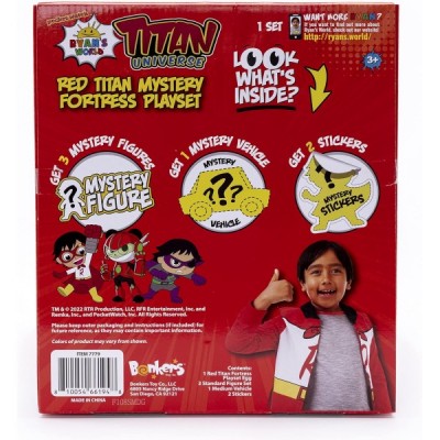 Ryan's World: 레드 타이탄 미스터리 포트리스 플레이 세트 | 미니 피규어, 차량 및 스티커로 Ryan의 Titan Universe를 발견하십시오! | 3세 이상 어린이용