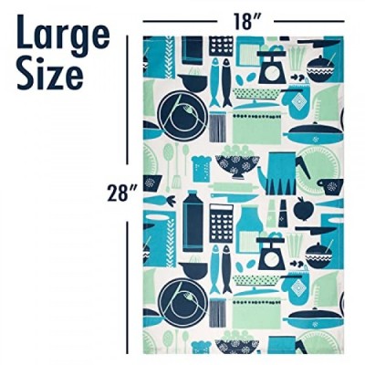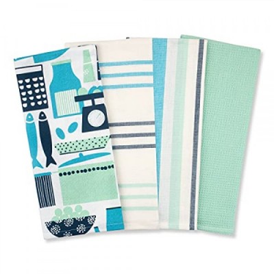 Jot & Mark 행주 100% 면 | 건조 및 주방용 4개 세트(씨폼 블루-그린)