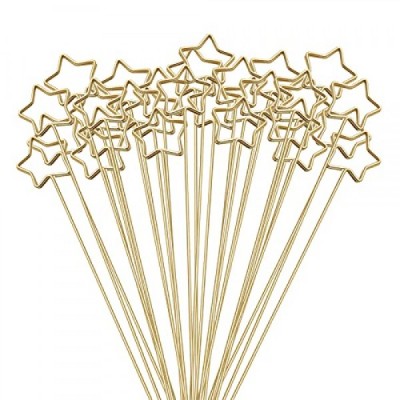 Tinsow 30 Pcs 금속 꽃 장소 카드 홀더, 13.4 인치 꽃 꽃꽂이 용 클립, 결혼식 및 파티 용 황금 선물 카드 홀더 (별)