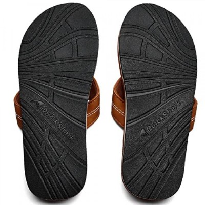 Quickshark Mens Flip Flops Leather Thong Sandals Arch Support Beach Slippers