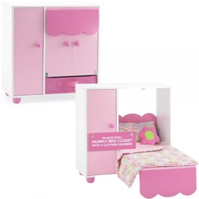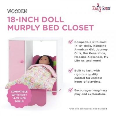 Emily Rose Space Saving 18 inch Doll Murphy Bed Furniture Closet Set, with 5 Hangers & Clothes Storage Bin | Mom's Choice Award Winner! | Fits 16-19 inch Dolls