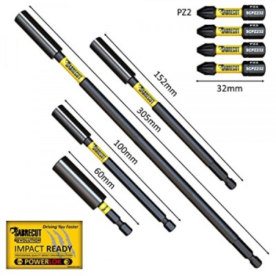 8 Piece SabreCut SCRK10 Magnetic 2 23/64, 3 15/16, 5 63/64 & 12 1/64 Professional Impact Bit Holders with 4 x 1 17/64 PZ2 Screw Bits Compatible with Dewalt, Milwaukee, Makita, Bosch and Others