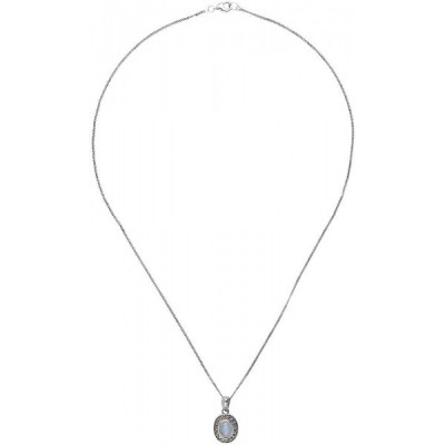 Esse Marcasite 스털링 실버 타원형 레인보우 문스톤 & Marcasite 목걸이 46cm / 18'' 체인