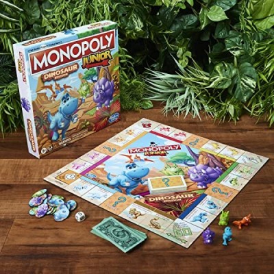 Hasbro Gaming Monopoly Junior Dinosaur Edition Board Game, 2-4 Players, with Dino-Themed Toy Tokens, Kids Easter Basket Stuffers, Ages 5+ (Amazon Exclusive)