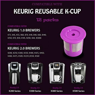 12 Pack Reusable Coffee Capsule K Cups Compatible with Keurig K-Classic, K-Elite, K-Select, K-Cafe, K-Compact, K200, K300, K400, K500 Family 2.0 and Classic 1.0 Coffee Filter Replacement