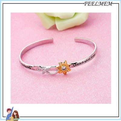 프렌드십 주얼리 비생물학 자매가 되어줘서 고마워요 확장형 와이어 뱅글 팔찌 시녀 선물 소울 시스터 베스트 프렌드를 위한 주얼리 선물 (Unbiological Sister-sunflower)