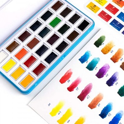 Paul Rubens Watercolor Paint Set Full Pan, 24 Vivid Colors Water Coloring Paint in Pocket Box with Metal Ring, High Transparency Intense and Durable, No Chalky, Perfect for Students, Kids, Beginners