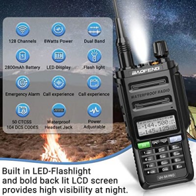2팩 BAOFENG UV-9R PRO 삼중 전원 듀얼 밴드 IP67 방수 양방향 라디오 장거리 충전식 워키토키(추가 ABBREE 42.5인치 전술 안테나 포함)