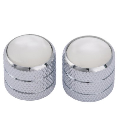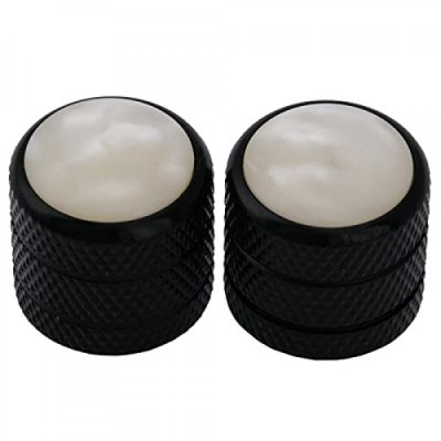 Musiclily Pro Metric Size Steel White Pearl Top Tele Dome Knobs for Import Fender Telecaster Electric Guitar/Precision Bass, Black (Set of 2)