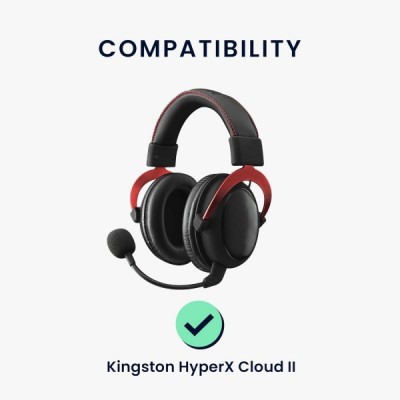 Kingston HyperX Cloud II/Cloud 2/Cloud 1 패드와 호환되는 kwmobile 2x 이어 패드 - 오버이어 헤드폰용 합성 가죽으로 만든 헤드폰 패드 블랙