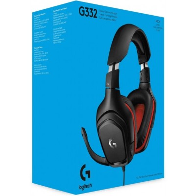 로지텍 G332 유선 게이밍 헤드셋, 50mm 드라이버, 회전식 인조가죽 이어컵, 3.5mm 잭, 플립 음소거 스위치가 있는 6mm 마이크, PC/Mac/Xbox One/PS4/Nintendo 스위치 - 블랙/레드