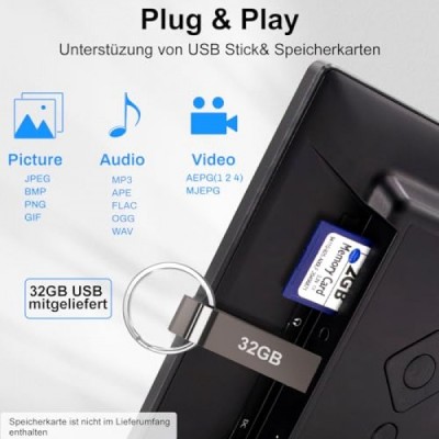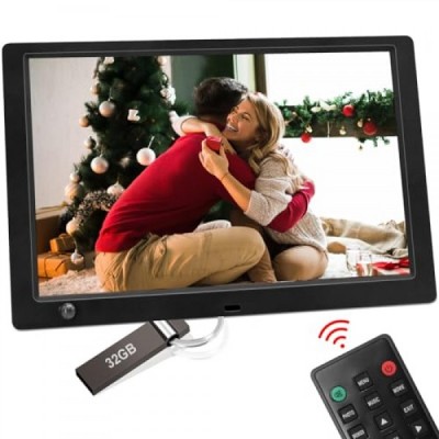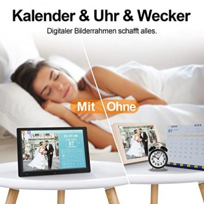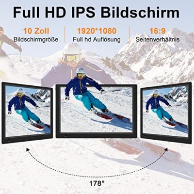 Digital Photo Frame 10 Inches, 1920 x 1080P IPS Electronic Photo Frame with Motion Sensor, Photo/Music/Video Player/Calendar/Alarm Clock, Automatic On/Off, Supports USB, SD Card, Wall Mountable