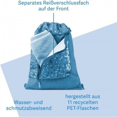 satch Sportbeutel Turnbeutel für Mädchen und Jungen mit Reißverschlussfach, 12 Liter, Rucksack fixierbar Einheitsgröße Betty Blue - Blau