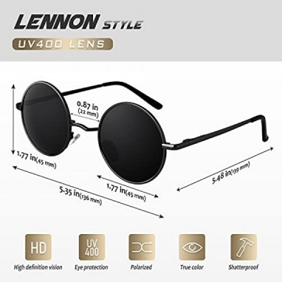 CGID Small Retro Vintage Sunglasses Inspired by Lennon Polarized with Round Metal Frame for Women Men E01, 45 mm, black, grey