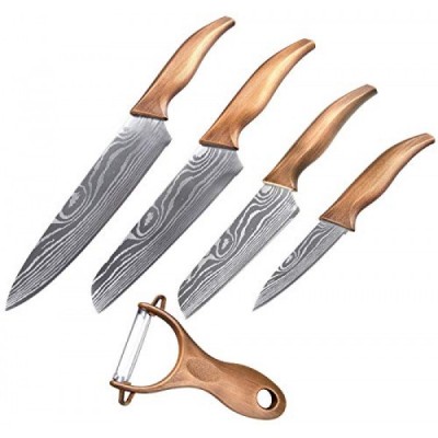 Wolf War Matte Black Titanium Plated Stainless Steel Kitchen Knife Set, Chef Kitchen Knife Set Professional(8 Chef Knife, 7 Utility Knife, 5 Fruit Knife, 3.5 Paring Knife, One Peeler) Silver