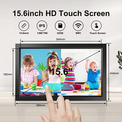 Digital Picture Frame WLAN 15.6 Inch Touchscreen Electronic Picture Frame with 32 GB Memory, Auto Rotate, Wall Mountable, Photos and Videos via App Frameo for Parents/Couples/Friends/Family