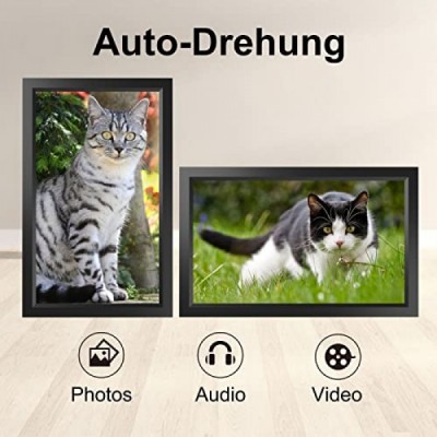 디지털 액자 WLAN 15.6인치 터치스크린 전자 액자, 32GB 메모리, 자동 회전, 벽걸이 장착 가능, 부모/커플/친구/가족을 위한 App Frameo를 통한 사진 및 비디오