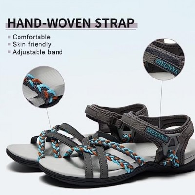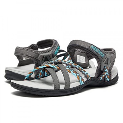 MEGNYA 여성용 하이킹 샌들, 편안한 워킹 샌들 후크 루프 스트랩, 스포츠 경량 슬라이드