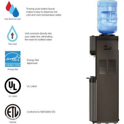 Brio 한정판 탑 로딩 워터 쿨러 디스펜서 - 블랙 스테인리스 스틸 - 냉온수, 어린이 안전 잠금 장치, 3 또는 5갤런 병 보관 - UL/Energy Star 승인