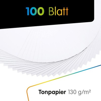 perfect ideaz • 100 Blatt Ton-Papier DIN-A4, Weiß, 130 g/m², MADE IN GERMANY, Blauer Engel zertifiziert DIN-A4 / Weiß