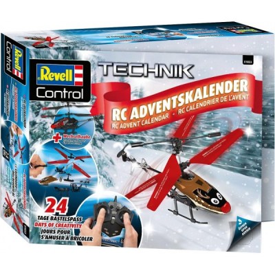 Revell Control 010339091 RC Adventskalender Helikopter mit Fernbedienung, 2.4 GHz, LED-Beleuchtung, Gyro, inkl. Batterien in 24 Tagen zum selbstgebauten, ferngesteuerten Hubschrauber, Rot