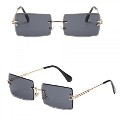 Ggpyyon 남성 및 여성을 위한 직사각형 무테 선글라스, 프레임 없는 선글라스, 여성 및 남성을 위한 복고풍 투명 렌즈, UV400 보호