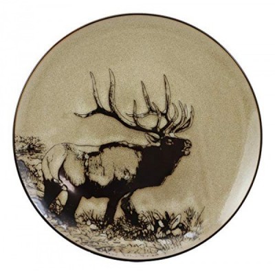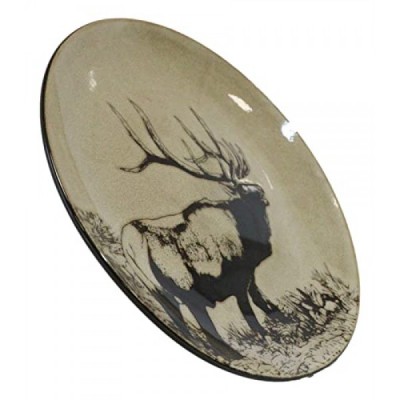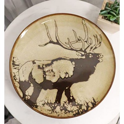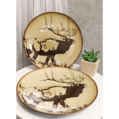 Ebros Animal Wildlife Forest Giant Emperor Bull Elk Abstract Art Large Round Dinner Plate Set of 2 10.75" Plates Dishwasher Microwave Safe Dinnerware Dishes