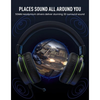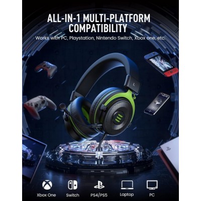 EKSA PC Headset mit Mikrofon, Gaming Headset mit Noise Cancelling Mic, 3,5 mm Bass Stereo Sound PC Headset für PC PS4 PS5 Switch Xbox One Laptop Tablet (E900, Green) Grün