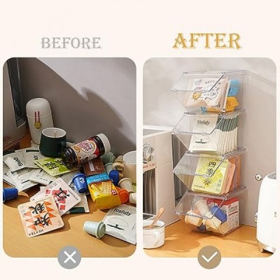 LLGWGL Tea Bag Organizer Coffee Pod Holder K Cup Holder, Stackable Large Capacity Acrylic Desk Organizer Box Snack Organizer with Lid, 4 Pack